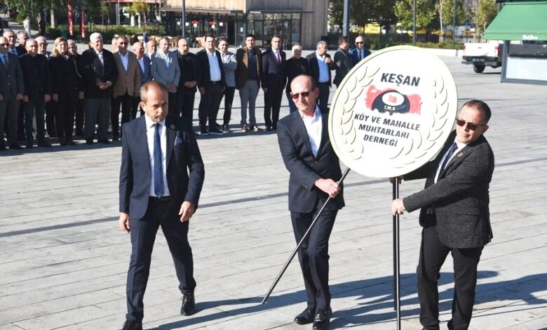 Keşan’da, 19 Ekim Muhtarlar Günü kapsamında düzenlenen tören Cumhuriyet Meydanı’nda gerçekleştirildi. Saat 10.30’da başlayan programda Atatürk Anıtı’na çelenk sunuldu, ardından saygı duruşunda bulunularak İstiklal Marşı okundu.