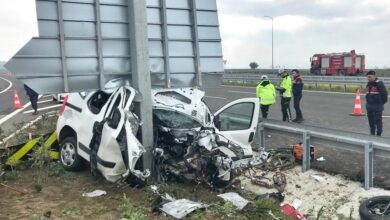 Yön levhasının direğine çarpan otomobildeki anne ile oğlu öldü, baba ağır yaralı..