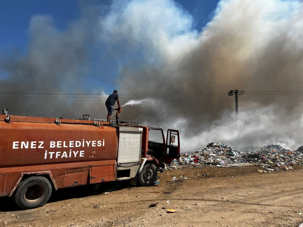 Edirne’nin Enez İlçesinin Gaziömerbey Mahallesi’ndeki eski çöp depolama alanında henüz belirlenemeyen bir nedenle yangın meydana geldi.