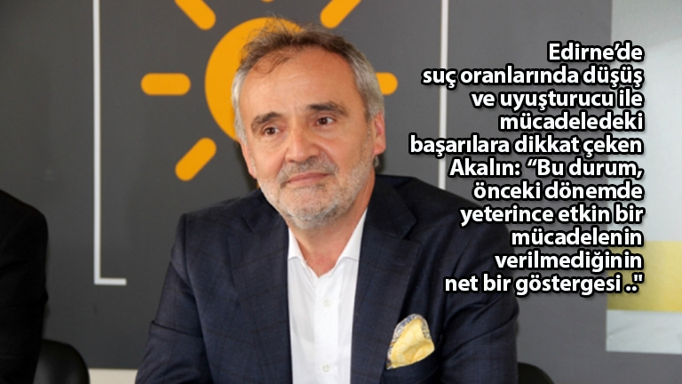 Edirne Milletvekili Prof. Dr. Mehmet Akalın, il genelinde suç oranlarında düşüş ve uyuşturucu ile mücadeledeki başarıların dikkat çektiğini dile getirdi.