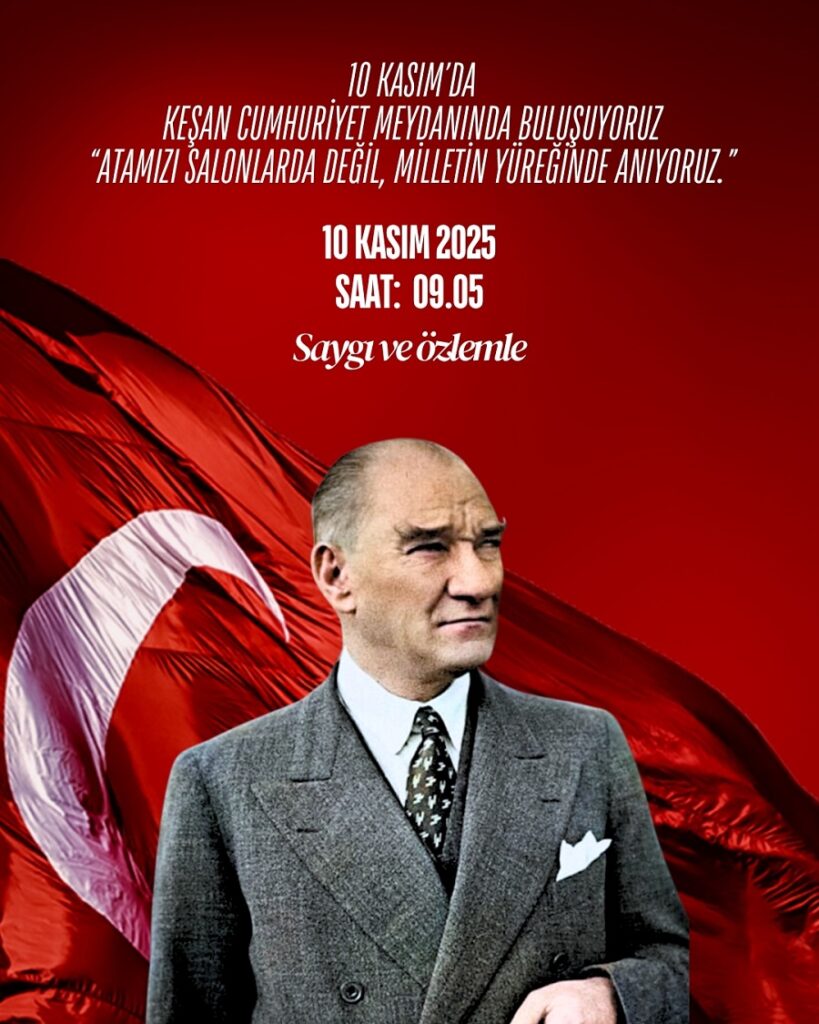 Keşan’ın kalbi Cumhuriyet Meydanı’nda atıyor. O meydan, yalnızca taş ve beton değil; bu toprakların şükranla dolu kalbidir. 10 Kasım sabahı, her sivil toplum kuruluşu, her meslek odası, her sendika, her siyasi parti ve her yurtsever; tek bir bayrağın gölgesinde, tek bir yürek olarak buluşmalıdır.