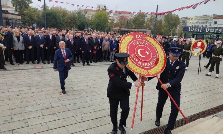 Keşan’da, 29 Ekim Cumhuriyet Bayramı kutlamaları çelenk sunma töreniyle başladı.