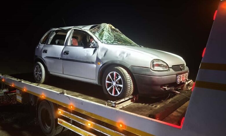 Alınan bilgiye göre, Mustafa Kemal Paşa Mahallesi 700 Evler Konutları istikametinden, Yenimuhacir beldesi istikametine giden S.G. (40) yönetimindeki 59 EF 619 plakalı otomobil, sürücüsünün kontrolünden çıkarak takla attı. Kazada, sürücü ile otomobilde yolcu olarak bulunan M.Ö. (44) yaralandı.