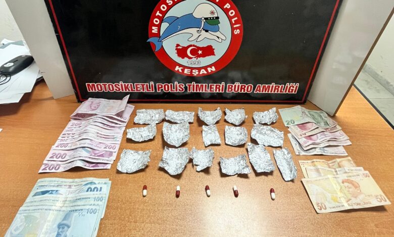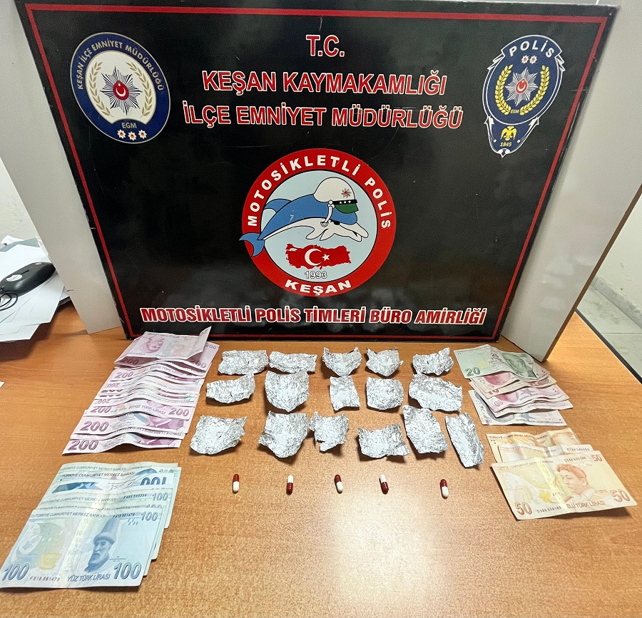 Keşan İlçe Emniyet Müdürlüğü ekipleri, Yörük Mahallesi Hakan Korkmaz Caddesi’nde durumundan şüphelendikleri S.B.’yi durdurdu.