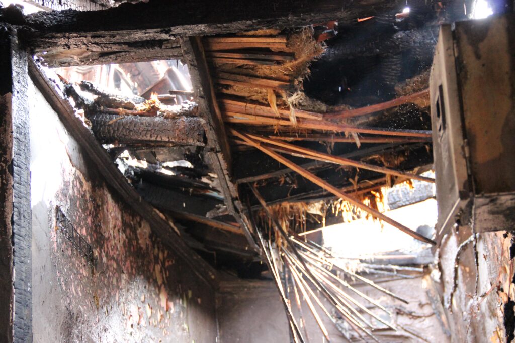 İtfaiye ekiplerince söndürülen yangın nedeniyle bir ev kullanılamaz hale geldi, bir evde hasar oluştu.