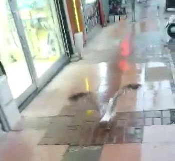 Cadde üzerinde kanatlarını açarak uçma denemeleri yapan yaralı martının durumunu fark eden bölge esnafı, bir süre onu yakalamak için uğraştı; ama kimse yakalayamadı.