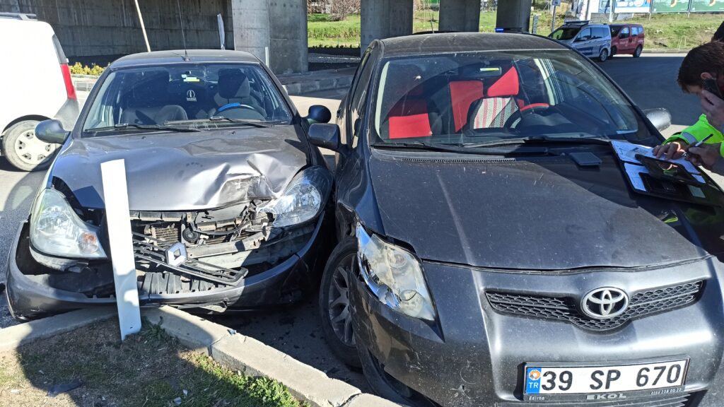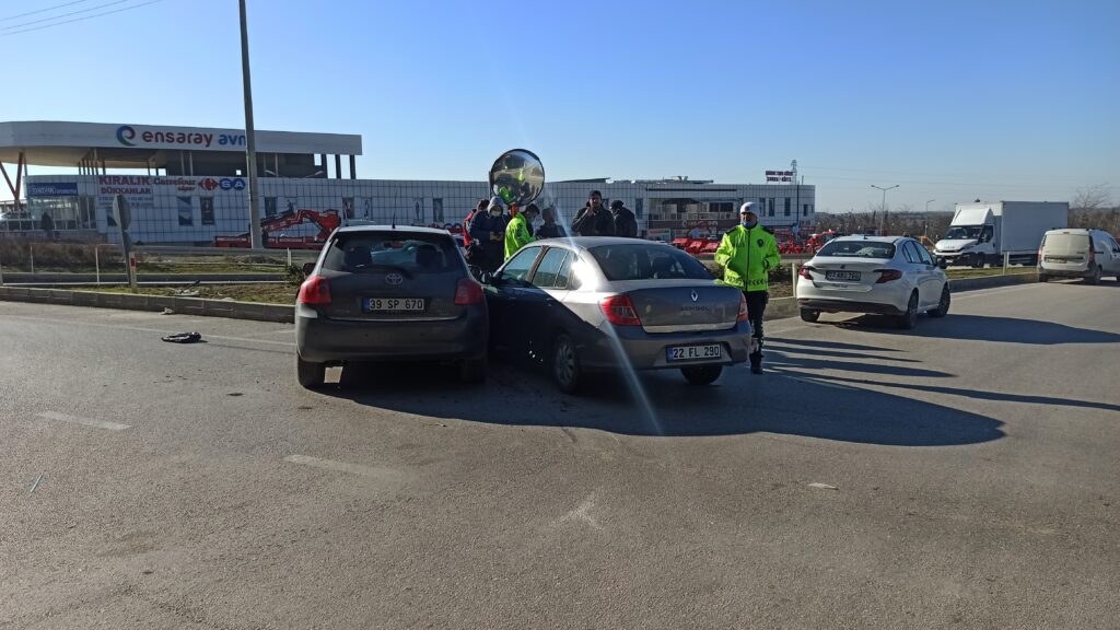Edinilen bilgiye göre, şehir merkezi istikametinden kavşak notasına giriş yapan İ.Y. yönetimindeki 39 SP 670 plakalı araç ile, o sırada Tekirdağ’da ameliyat olan oğlunu hastaneden alarak Keşan’a istikametine giden A.Ö. idaresindeki 22 FL 290 plakalı araçlar çarpıştı. Çarpışmanın etkisiyle iki araç da refüje savrulurken, araçlarda bulunan sürücü A.Ö. hafif yaralanırken, aynı araçta bulunan A.Ö. ve N.Ö. isimli iki kişi de yaralandı.