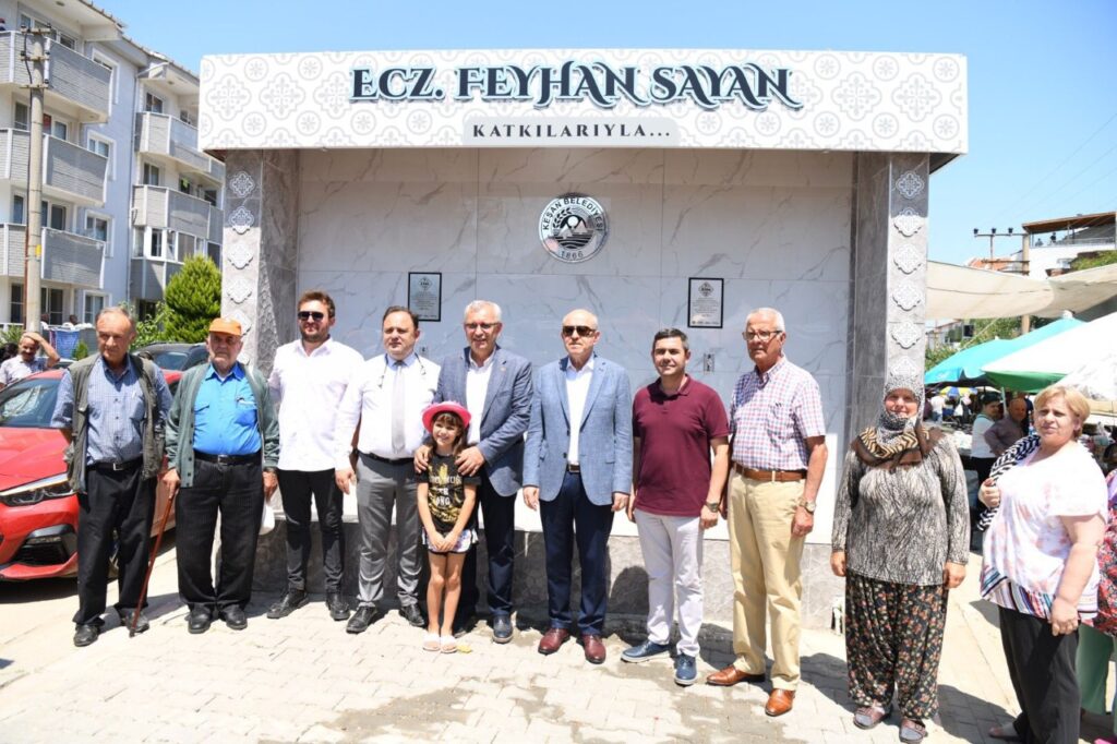 Parkın açılış kurdelesinin katılımcılar tarafından kesilmesinden sonra Eczacı Feyhan Seyhan tarafından yaptırılan Hayır Çeşmesi’ne geçildi.