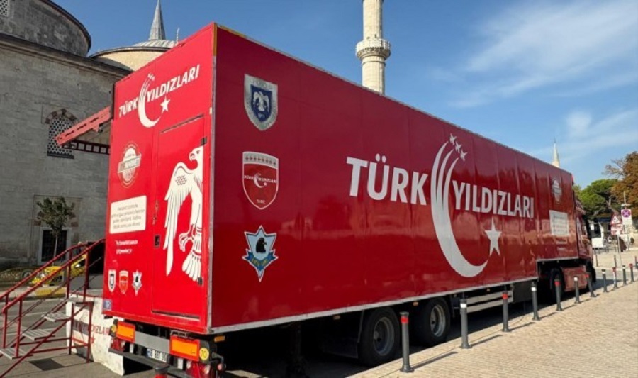 Ay yıldızlı jetlerle yaptıkları akrobatik gösterilerle nefesleri kesen Türk Yıldızları, 26 Ekim Pazar günü Edirne semalarında uçacak. Gösteri öncesi, Türk Yıldızları’nın lisanslı ürünlerini satan TIR Edirne’ye geldi. Satışlardan elde edilen gelir Kartal Vakfı aracılığıyla şehit ailelerine bağışlanacak